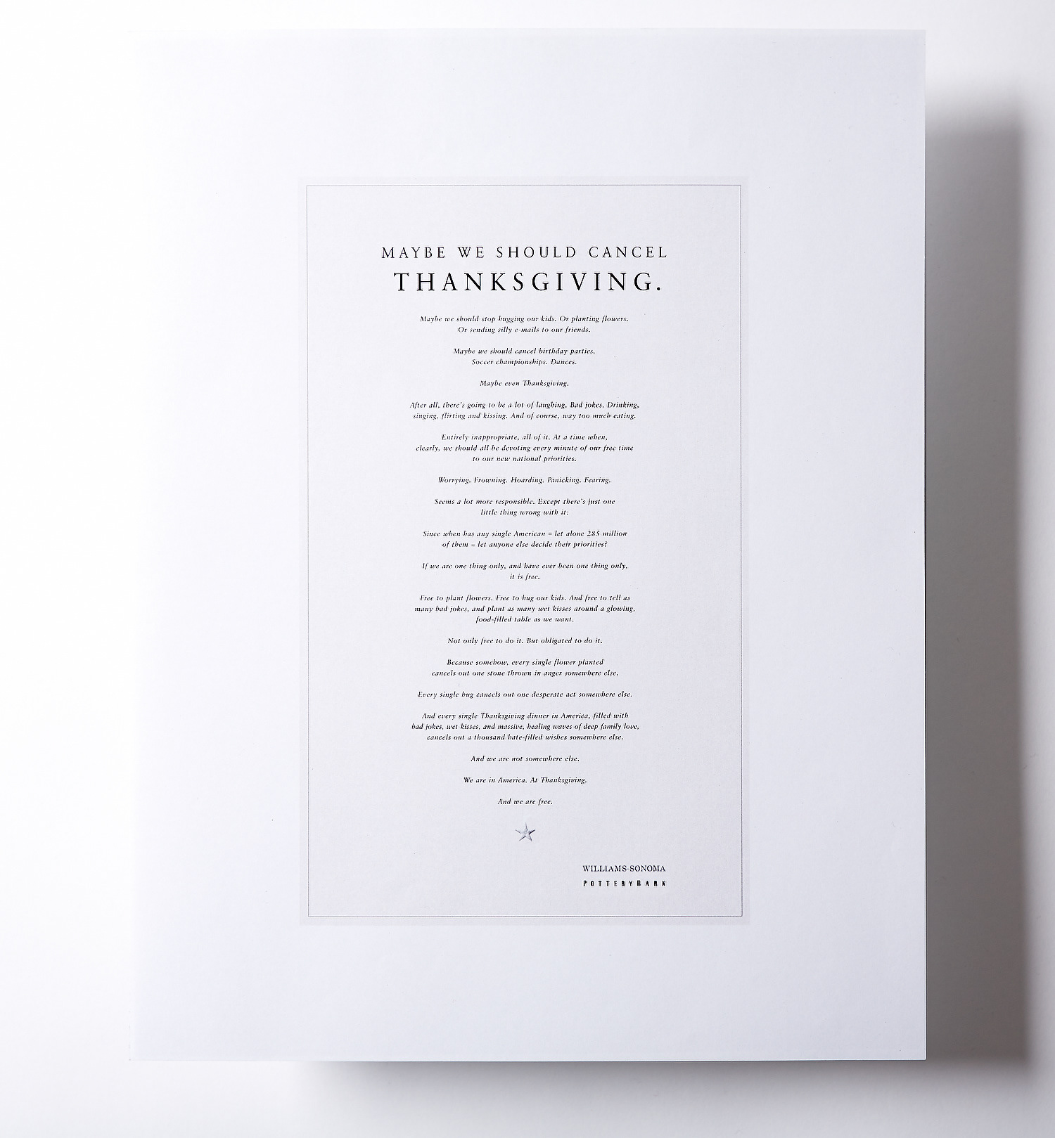 This was bravely commissioned by the retailer for the first Thanksgiving after 911.